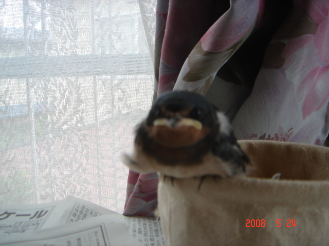 もともと昆虫食のツバメだからか、すり餌はまずいのか二口目には嫌がるので、一口目には必ずすり餌をやることにする。