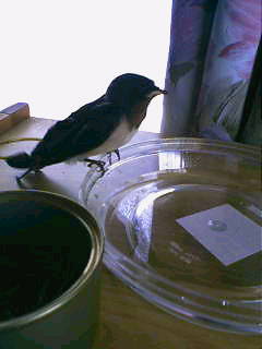 画像は、四日目のツバメ。ピンボケってますが。